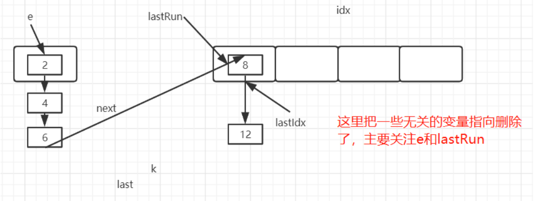 for (HashEntry<K,V> p = e; p != lastRun; p = p.next) {