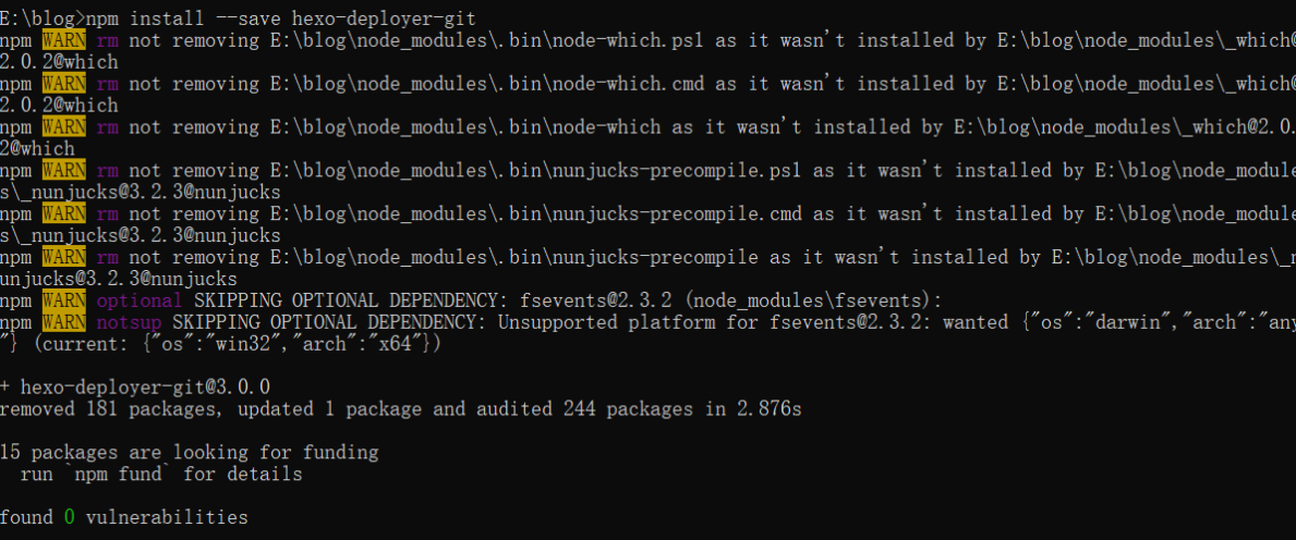 3、在windows的Dos窗口下使用npm install --save hexo-deployer-git