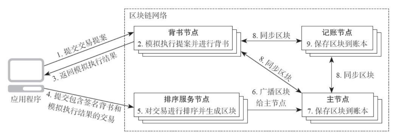账本数据只能通过交易执行才能更新,应用程序通过交易管理提交交易提案(Proposal)并获取到交易背书(Endorsement)以后,再给排序服务节点提交交易,然后打包生成区块。