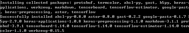 之后将看到tensorflow成功下载,小开心,但又出现新的错误提示:找不到与tensorflow版本对应的grpcio模块,