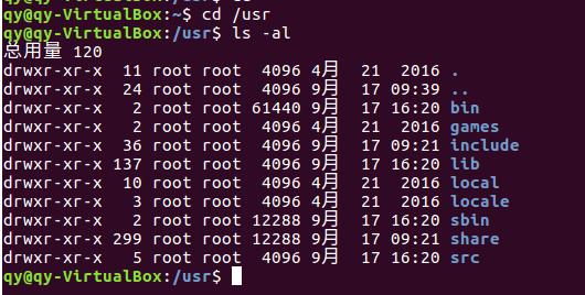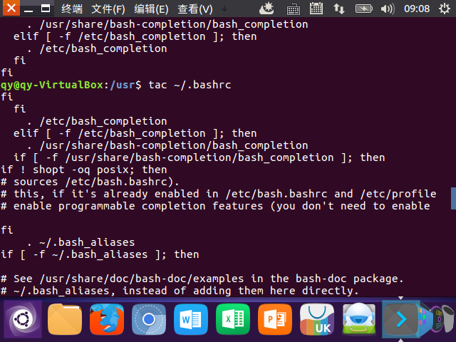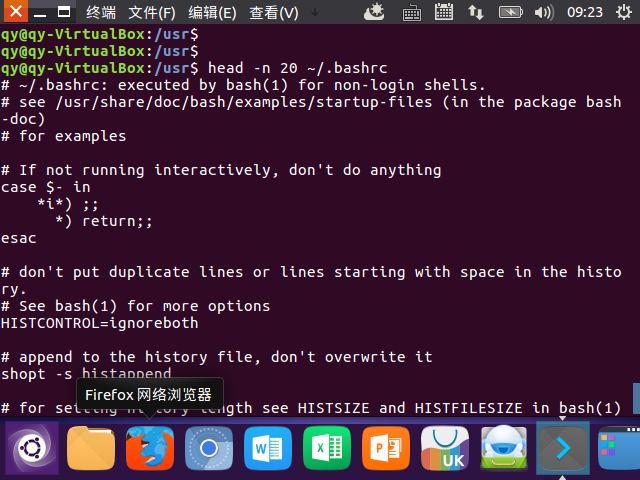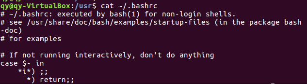 (9)将主文件夹下的.bashrc复制到/usr下,命名为bashrc1