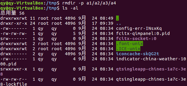 (5)进入/tmp目录,创建一个名为a的目录,并查看有多少目录存在