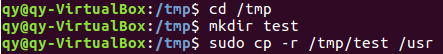 (10)在/tmp下新建目录test,再复制这个目录内容到/usr