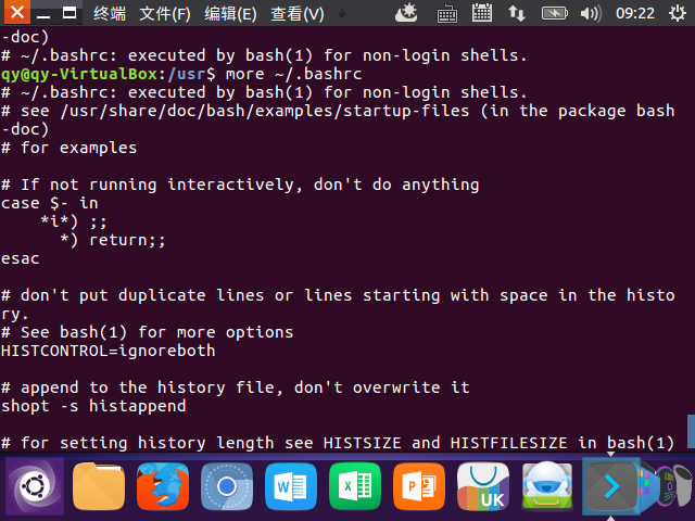 (19)查看主文件夹下.bashrc文件内容,后面50行不显示,只显示前面几行