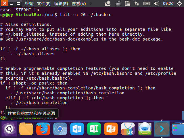 (19)查看主文件夹下.bashrc文件内容最后20行