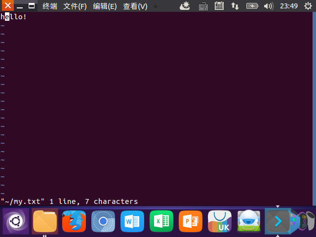 (23)在主文件夹下创建文本文件my.txt,输入文本保存退出。