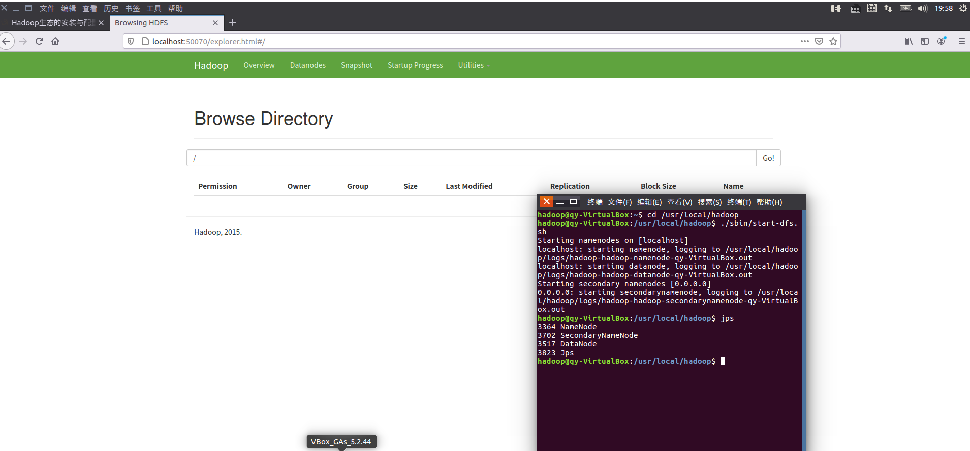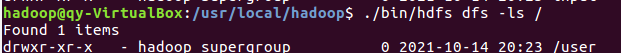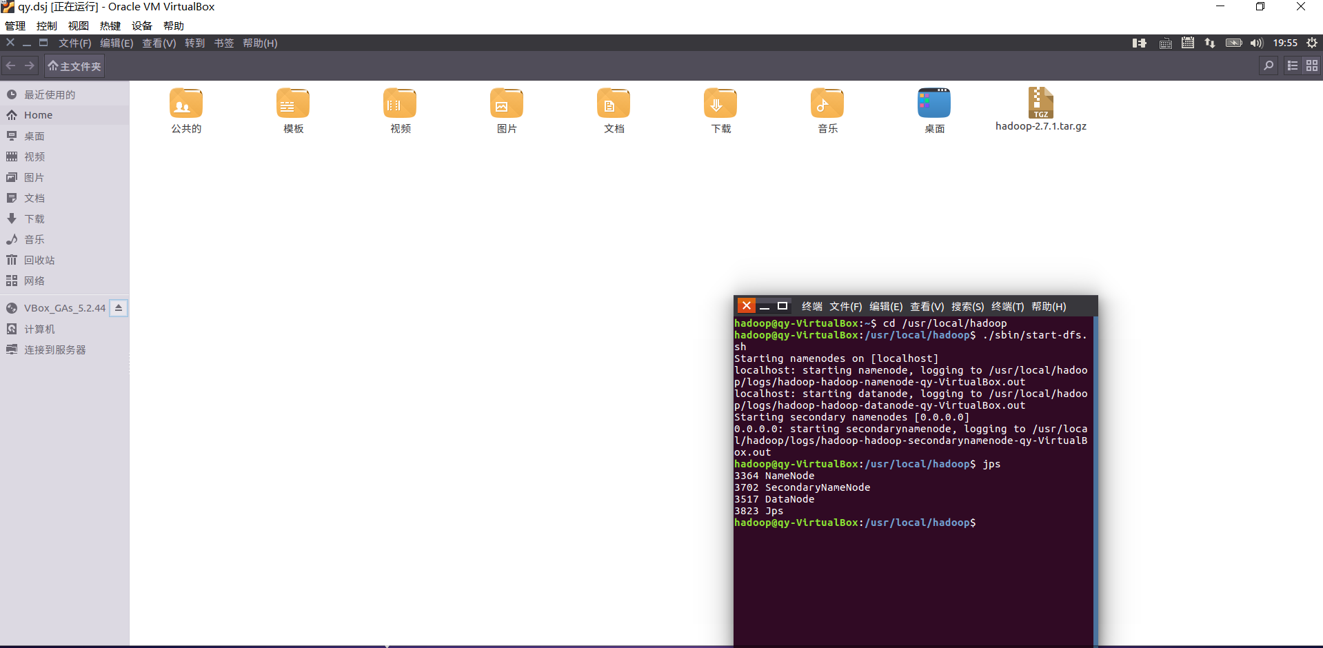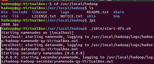 设置Hadoop环境变量,在本地用户主目录下启动hdfs,查看hdfs用户主目录