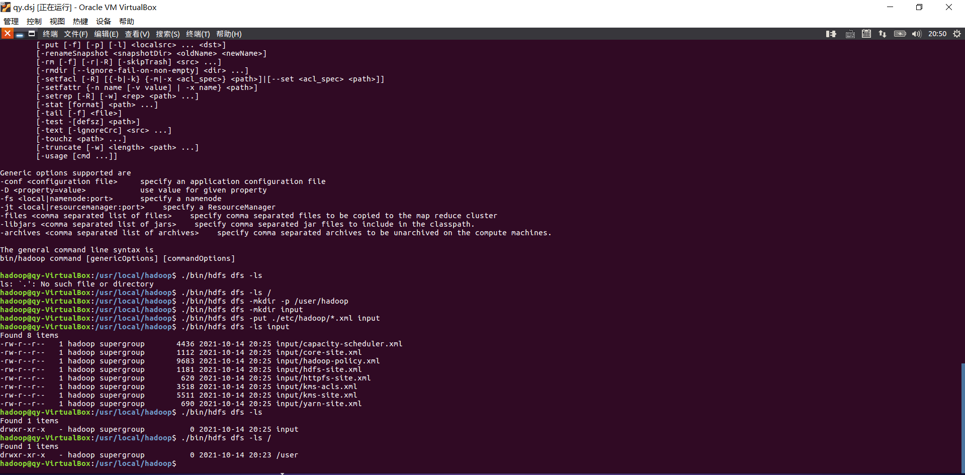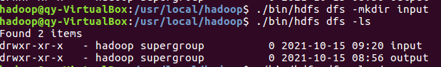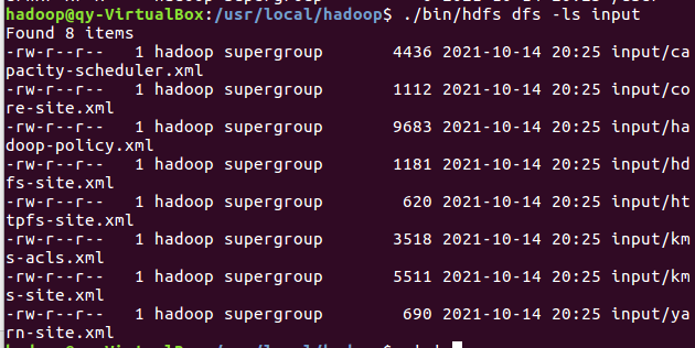 将hadoop的配置文件上传到hdfs上的input目录下。