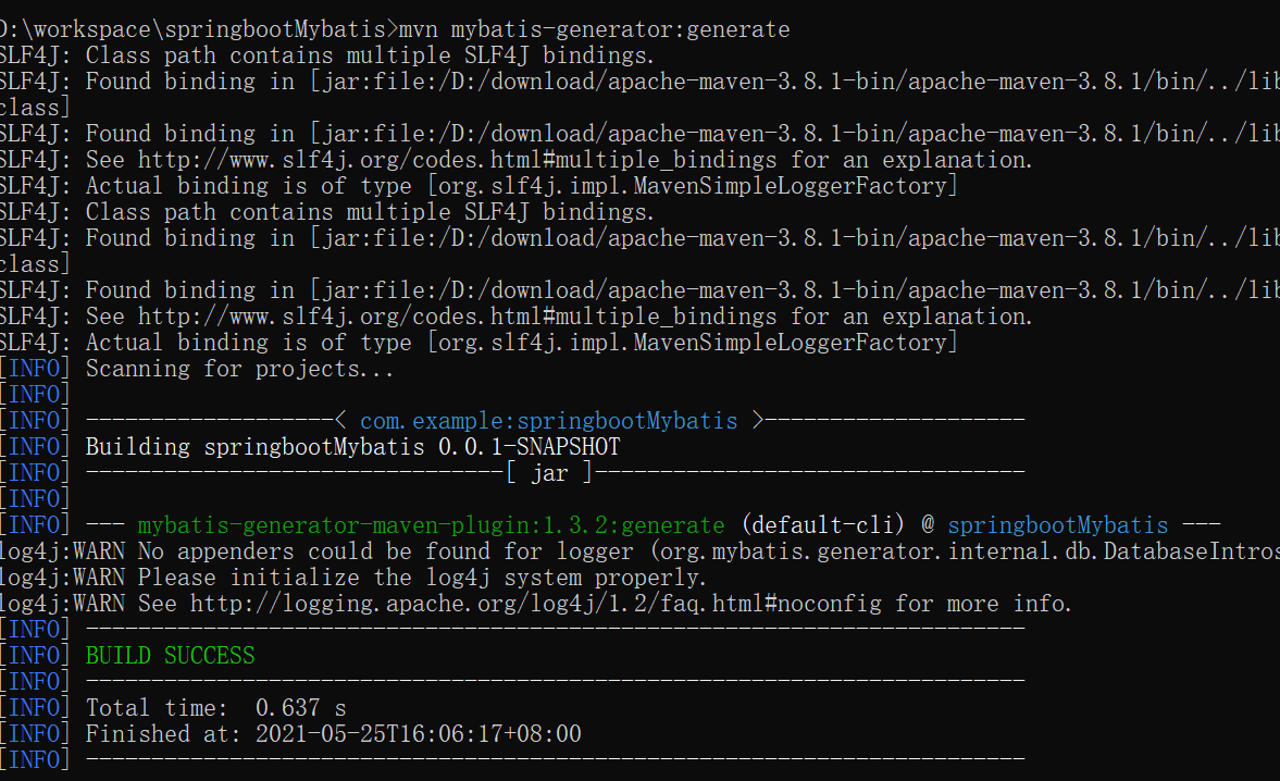 cmd进入到项目的根目录执行mvn mybatis-generator:generate