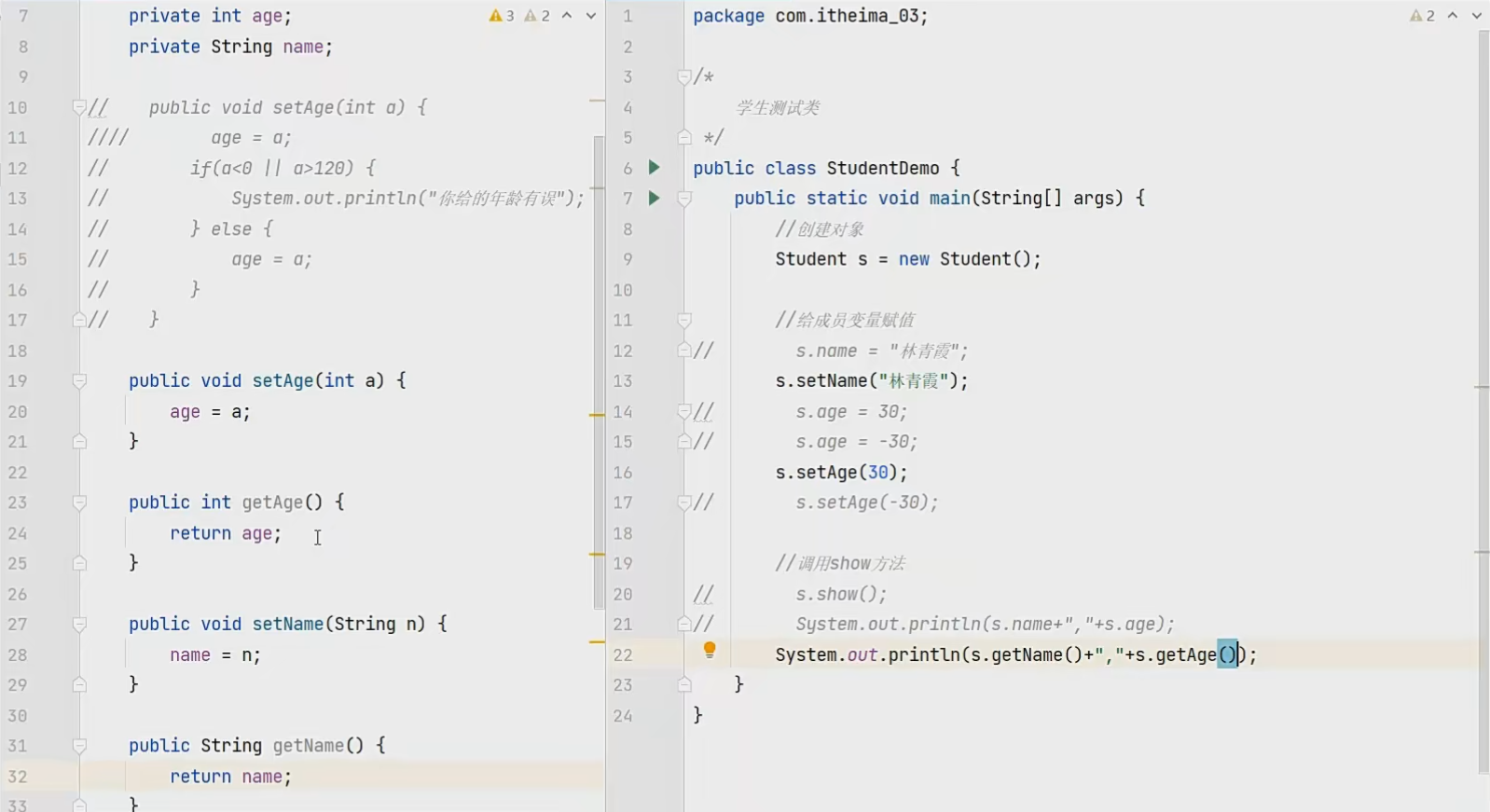 用private修饰的变量不可以被类的外部访问,可以通过定义类中的方法,在类的外部调用方法间接对变量进行访问或控制,类中的方法可以也可以对外部想要修改的变量进行控制