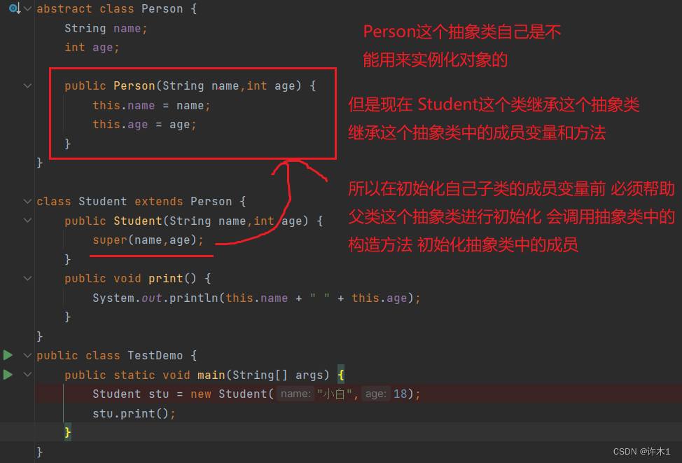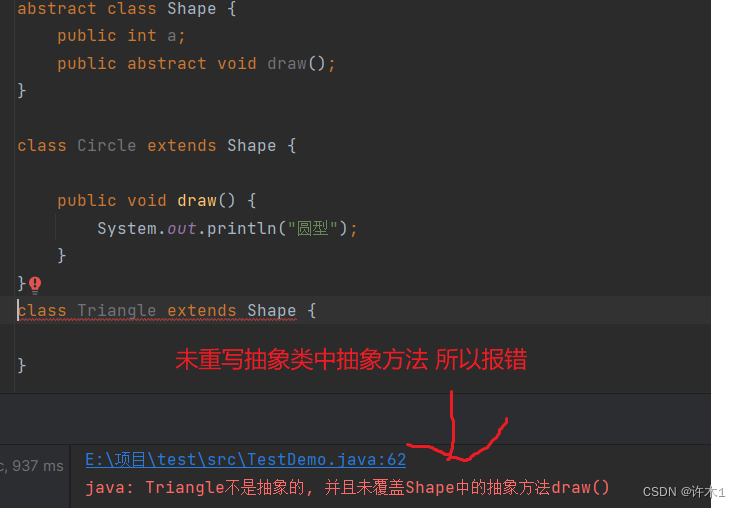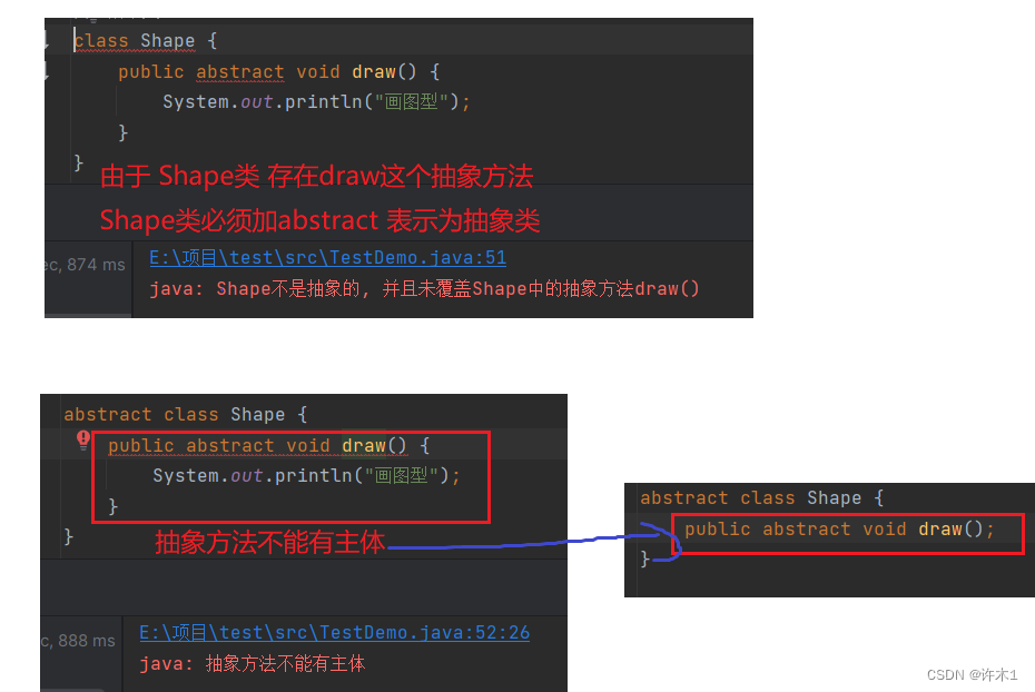 由于抽象方法的存在 包含抽象方法的类也必须加上abstract修饰 此时这个类叫做抽象类