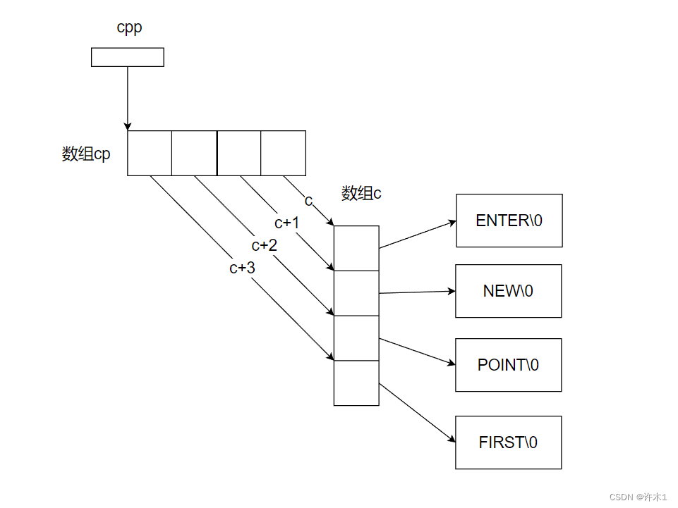 char** cp[] = { c + 3,c + 2,c + 1,c };