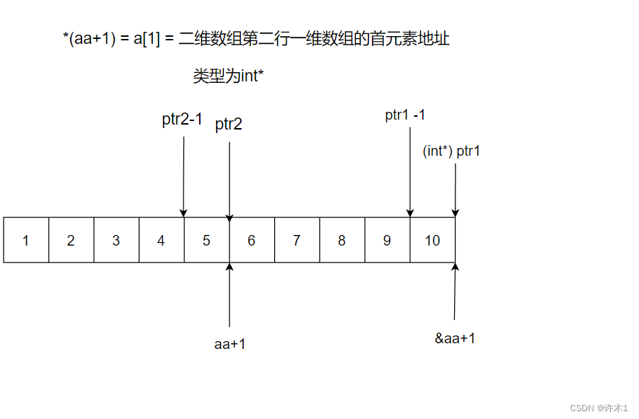 int* ptr2 = (int*)(*(aa + 1)); // aa[1]