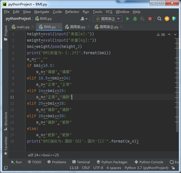 首先复习了昨日的“BMI值”相关的程序并自己尝试写出程序