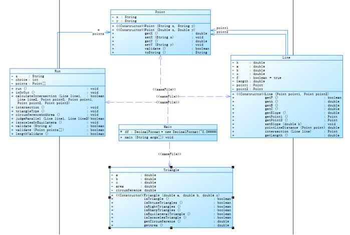 选项4中,若前两个输入线的点重合,输出"points coincide"。