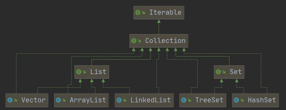 - Collection接口没有直接的实现子类,是通过它的子接口Set和List来实现的