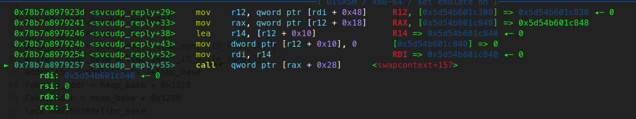 - fake_iolist+house of apple调用链控制rdi并调用到svcudp_reply+29
