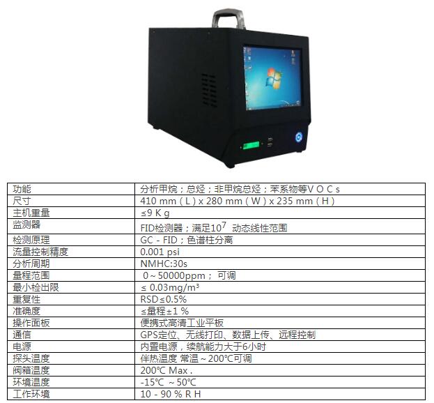 ■将传统的甲烷非甲烷总烃在线监测系统集成到同一个便携式机箱内,包含显示器、FID检测器、切换阀、色谱柱、电子流量控制器、电池、气瓶等