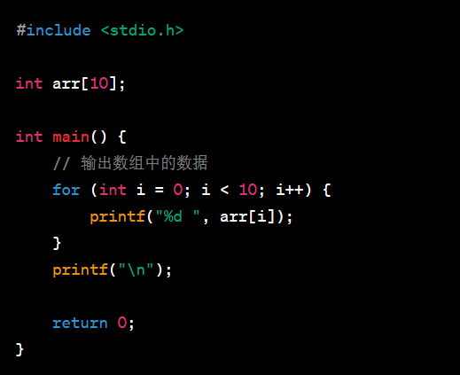 在这种情况下,arr数组在全局下定义,他的元素将会被自动初始化为 0 , 所以他的输出结果是