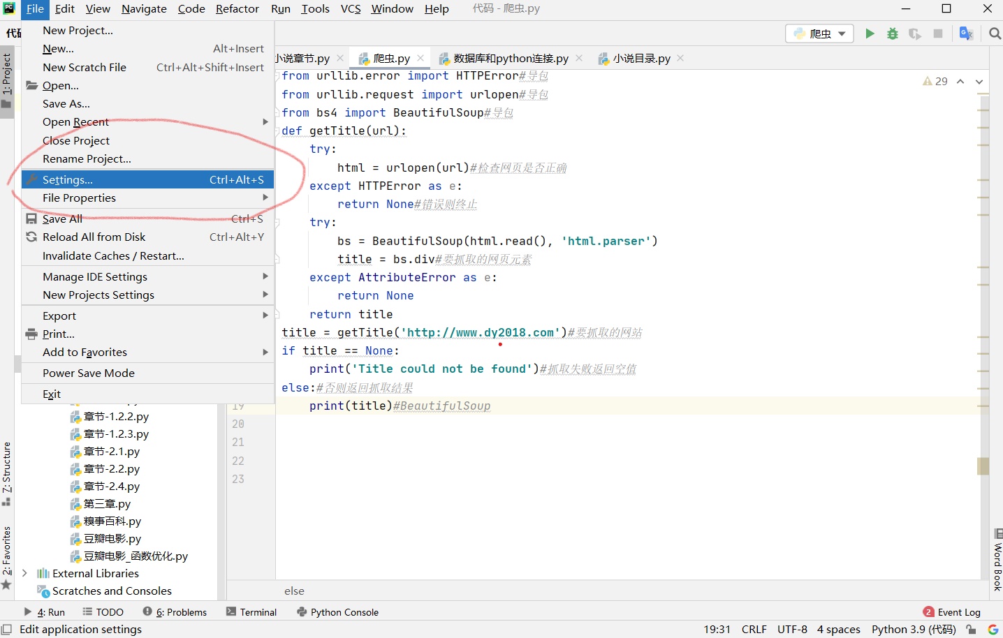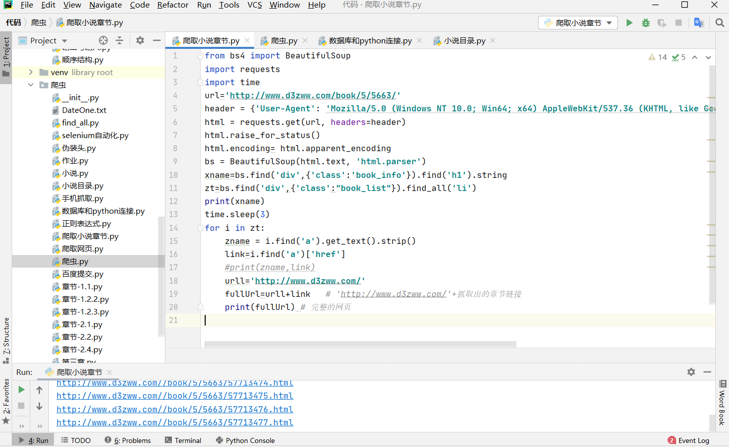 爬取单个网页小说的所有章节连接