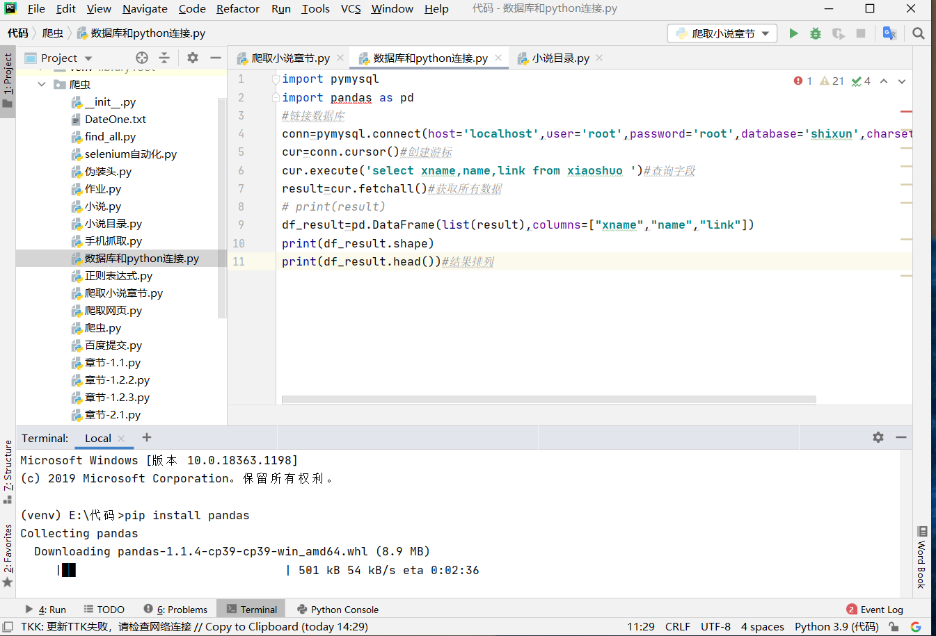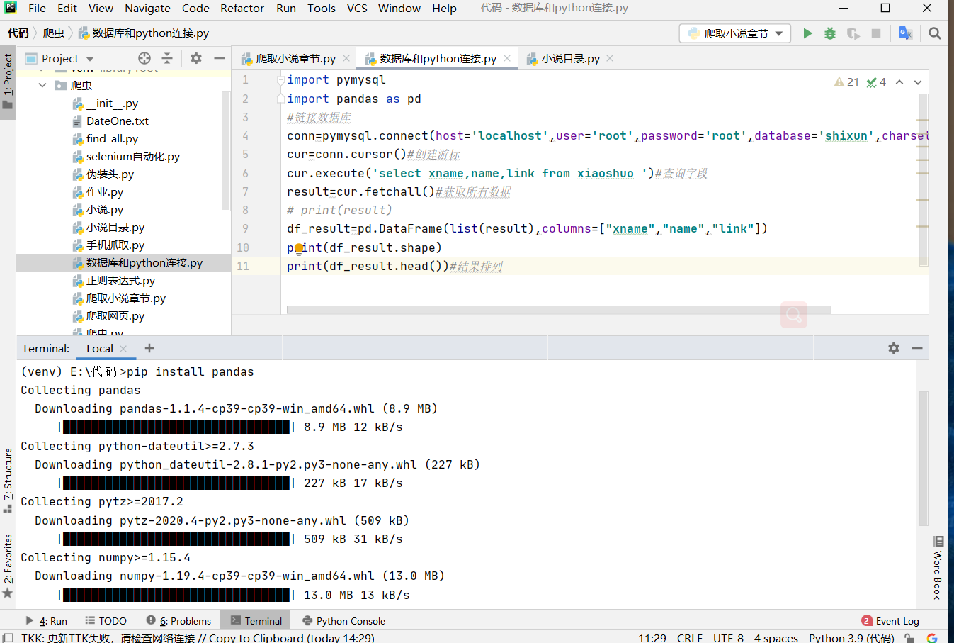 安装库和爬取二级页面