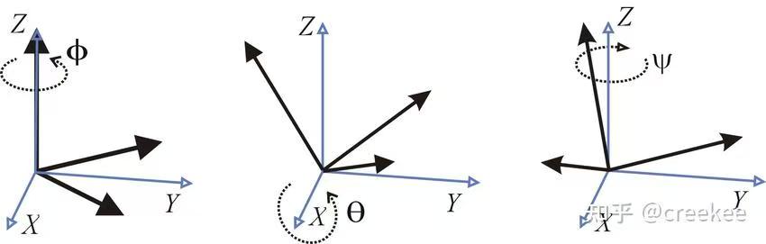 用欧拉角表示坐标系的旋转时存在两种旋转方法,此外,旋转的顺序也会对旋转结果有影响。