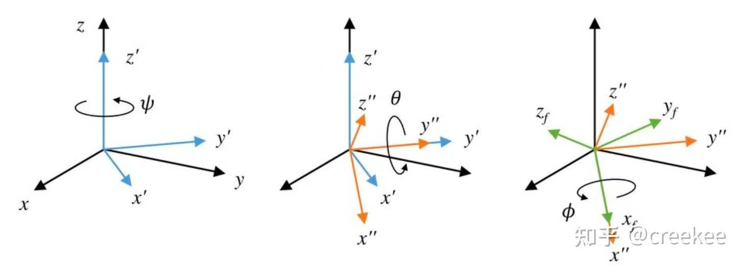 内旋:要将绕各轴的旋转矩阵从左至右连乘。