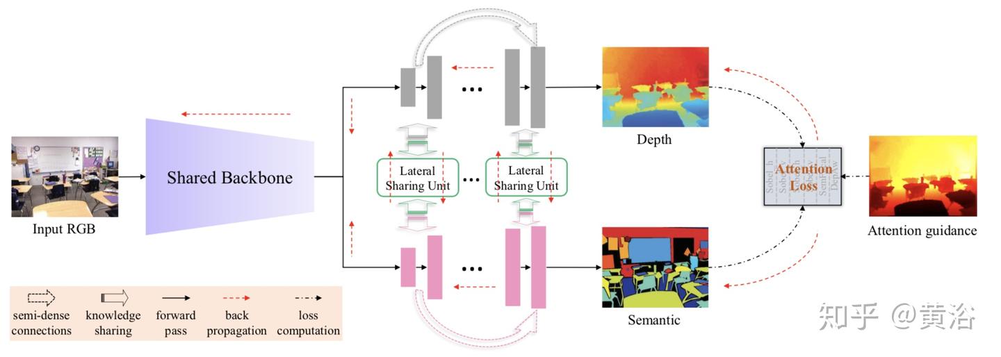 这个工作延续了以前利用分割提高深度估计的想法,只是假设上attention机制: