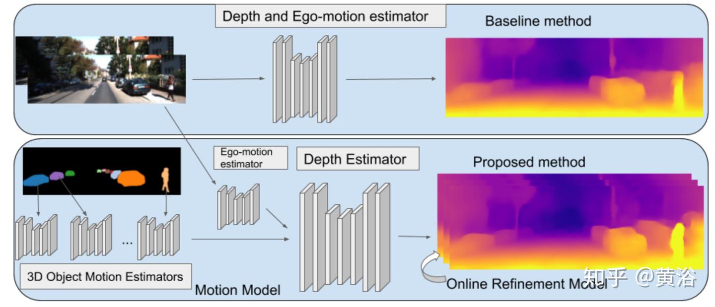 自然地采用帧间运动为单目视频的深度估计提供帮助,实际上是双任务联合训练的例子: