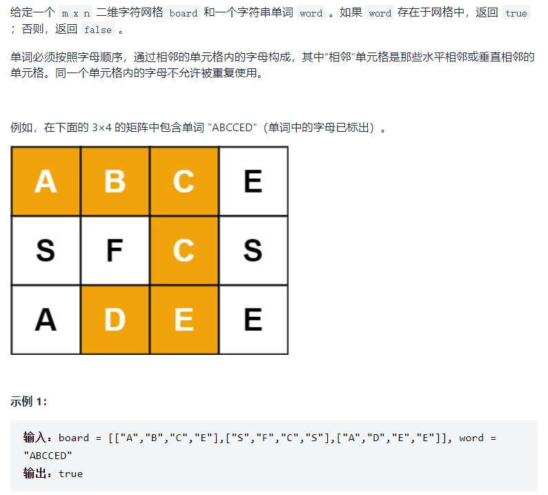 - 在进行编写回溯相关的代码时,有一点非常需要注意!在之前的错误答案中,自己在进行递归调用时,直接return 一个方向的递归结果,这样会使得一个方向搜寻失败,之前的已经匹配成功的部分全部return false!正确的做法应该是return 四个方向搜寻结果的并集,这样只要有一个方向成功,仍然可以按照这个方向继续搜寻下去。