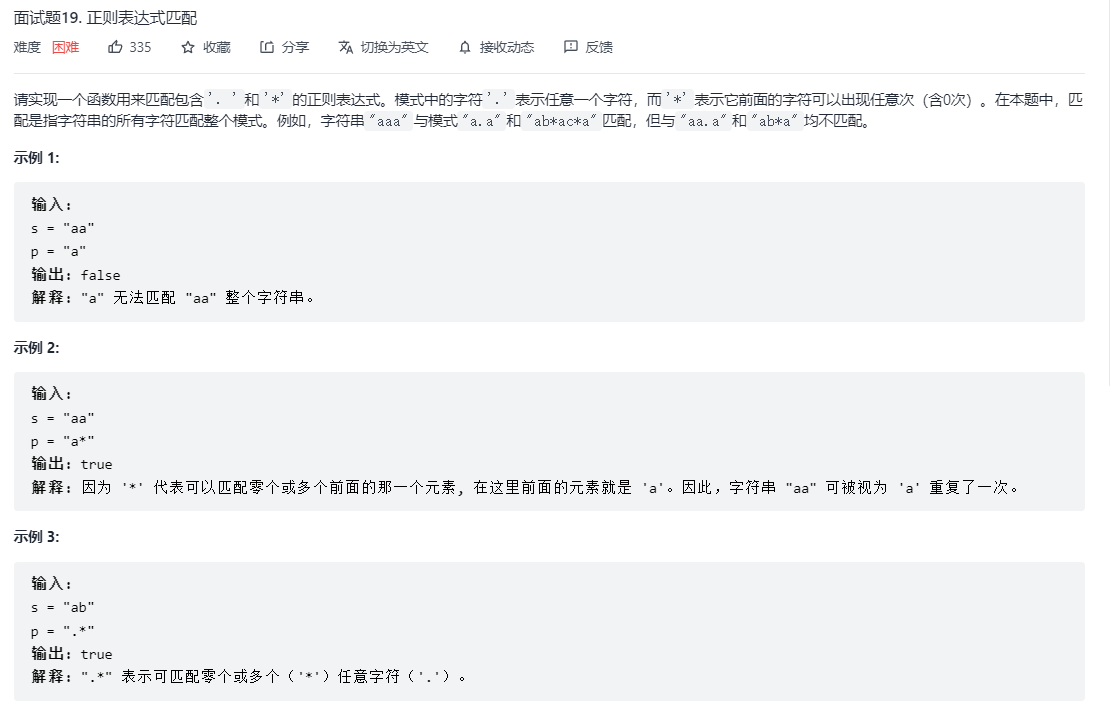 剑指 Offer 19 正则表达式匹配