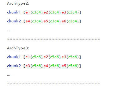 上文提到,Entity中的所有组件数据是排布在一块内存里面的,每一种不同的排布,就会对应一种"类型"ArchType, DOTS 高效的内存分配器只需要基于ArchType所对应的内存块大小来进行分配就可以了。DOTS的entity组件数据的内存分配器基于Chunk设计,每个Chunk的大小为16kb,每个Chunk只会分配同一种类型的ArchType, 根据ArchType的组件组合,我们就可以计算出它们一共所需要的内存大小,我们就从Chunk中固定分配对应的内存大小就可以了,这样Entity对应的所有组件内存非常高效的分配与释放,同时每种Chunk只存放一种ArchType类型的内存块,每次分配的内存大小都是一样,这样可以避免内存碎片。基于ArchType的内存排布如下所示:
