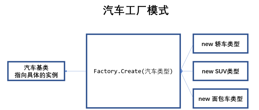 先来看一个生活中的真实的案例,某个品牌的汽车制造工厂,对外提供生产这个品牌的不同型号汽车的服务。外界只要下一个”汽车型号”, 工厂可以根据型号构建出来不同型号的汽车。这样外界不用关心工厂内部是怎么运作的,当用户需要某个型号的汽车的时候调用接口就可以了,同时内部工厂的机制,可以任意的修改,比如增加了一个新的汽车型号的服务等。