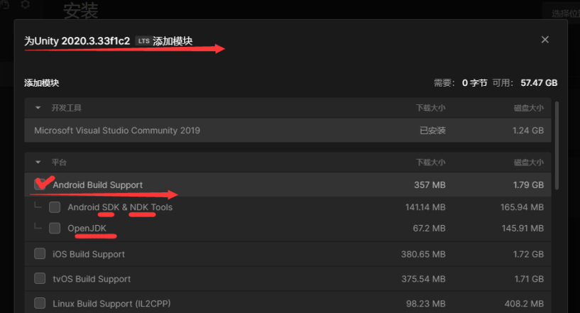 (1) Unity hub 安装Android打包环境: JDK, NDK, SDK;