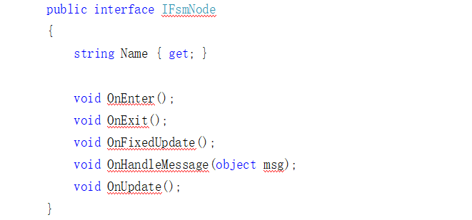 每个状态机节点,都有几个统一的固定的入口,这些入口如何设计与行业相关,比如我们的游戏行业,设计状态机节点接口一般如下: