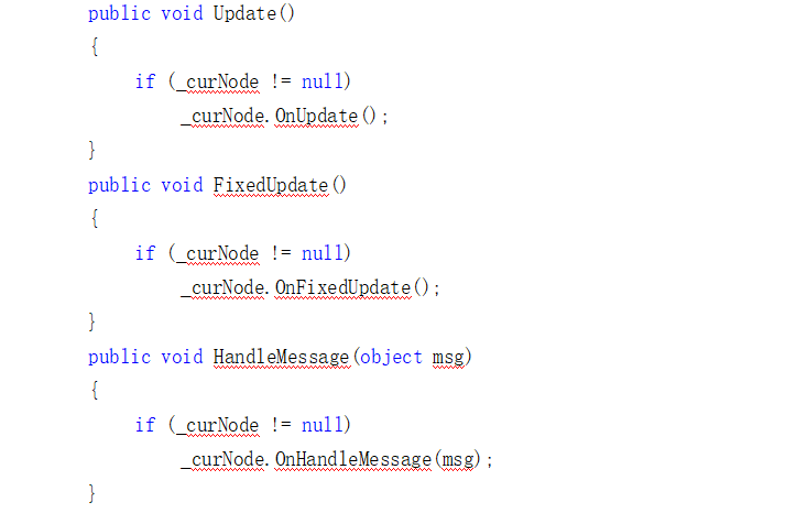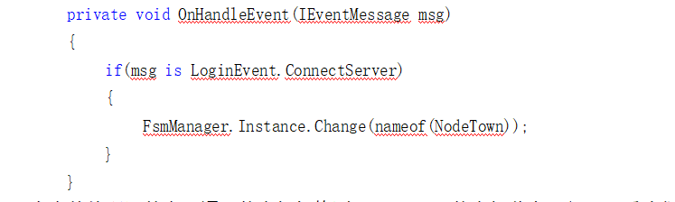 OnHandleMessage(object msg): 给状态机节点触发事件消息的时候调用这个接口,来作为状态机节点处理事件消息的控制入口。