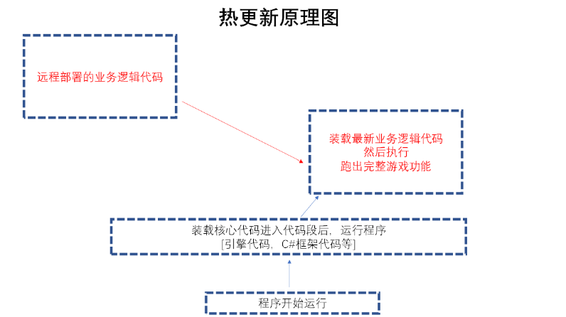 ILRuntime热更新原理是基于Unity引擎,内置一个.net 字节码解释器,解释执行.net字节码。对于开发人员而言,使用.net技术将游戏逻辑代码开发出.net标准的字节码动态库(.dll)。将.net字节码的dll放入到Unity的资源里面,然后加载这个资源文件里面的.net字节码,再用内置的解释器解析执行游戏逻辑。如果把这个”字节码.dll资源”放服务器,就可以实现更新下载,然后再装载运行。有原理可知,我们实现ILRuntime来开发项目,就可以分成2个部分: