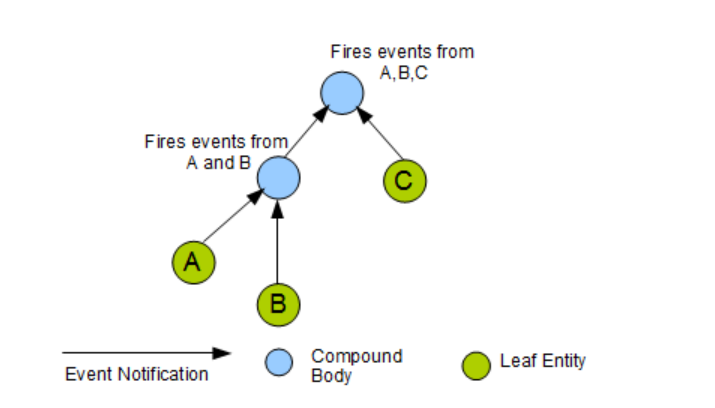 在Compound Body中收集每个孩子的碰撞检测的事件是很不方便的,为了方便处理Compound Body收集孩子的物理事件后,触发到它的事件上。