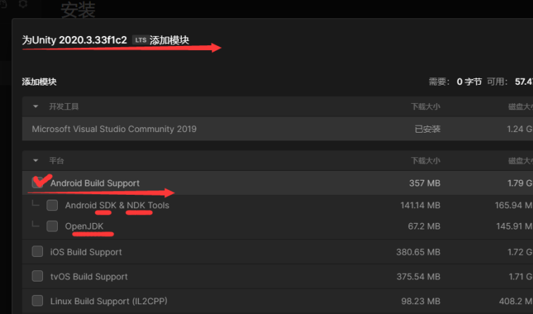 (1) Unity hub 安装Android打包环境: JDK, NDK, SDK;