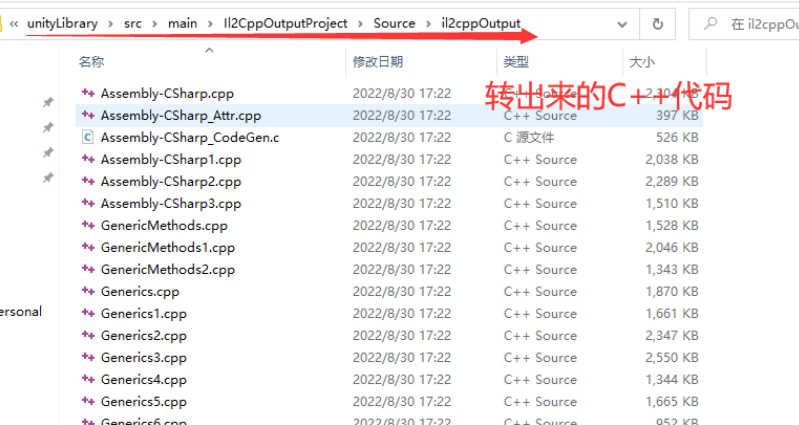 选择il2cpp,导出一次项目,查看以下多了il2cpp的内容,如下: