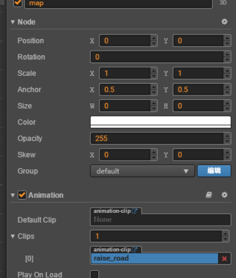 step2: 给map上添加一个动画组件, 编辑一个动画
