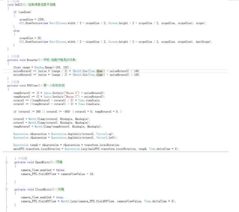 相信很多人都玩过FPS类型的游戏吧,比如CS,CF,绝地求生啊等等。FPS是一种非常经典的游戏类型。而且试问下有那个男生不喜欢开枪杀戮(仅只游戏内)的快感呢?哈哈。我也相信能做出一款FPS类型的游戏,是大部分喜欢玩FPS游戏的人的理想。现在有unity这个引擎,我们很方便的就能做出一些FPS游戏出来。当然游戏质量这个东西,要看自己的能力了。FPS游戏有很多有意思的点,其中一个就是枪开镜后的呼吸晃动效果。让枪上下左右晃动不定,来模拟抢手状态。那么这个效果怎么做呢?感觉好厉害啊。先来看看做完后的效果。当然不是动图,看不出来效果,不过你可以找我要demo。