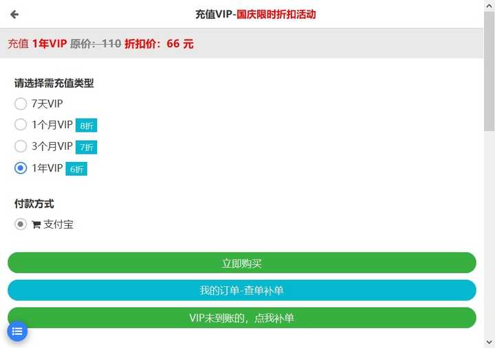 秒播原理解释为什么迅雷的边下边播经常看 1 秒卡 10 秒,黑科下载器加载几秒直接播放?那是因为这个资源已经离线下载好了,放在服务器里面,你要看直接给你,所以才能秒播。能不能在线秒播,还得看你找的是什么资源。如果这个资源之前有人看的话,那么恭喜你,可以秒播;反之,需要让服务器离线下载,下载好了再给你看。如果你看到某个资源没有人看,作为老司机给大家的建议:换种子比等待解析更高效(等待解析不一定能成功,冷门种子或者无种的种子,服务器也无可奈何)。快速换种必备种子聚合搜索器:还在到处找种子?试试这 2 款 PC 端种子聚合搜索器www.xjcbt.com购买会员建议免费用户每天仅可以看 5 次片,如果你实在是不舍得这点钱,可以通过 临时邮箱 注册很多小号,只要你有精力,注册上万个号都没有问题。VIP 用户每天可以看 500 次,相当于无限看片了。建议不打折的时候购买 1 个月的 VIP(仅 10 元),过期了再续。要是买了 1 年,如果作者跑路了,那就没地方说去了。打折的时候建议 3 个月、1 年都可以选,就算跑路了也没亏多少。而且黑科下载器的打折力度很大,原价 1 年 110 元,打折只要 66元。只要是逢年过节包打折,下图就是 2018 年国庆节大打折情况。