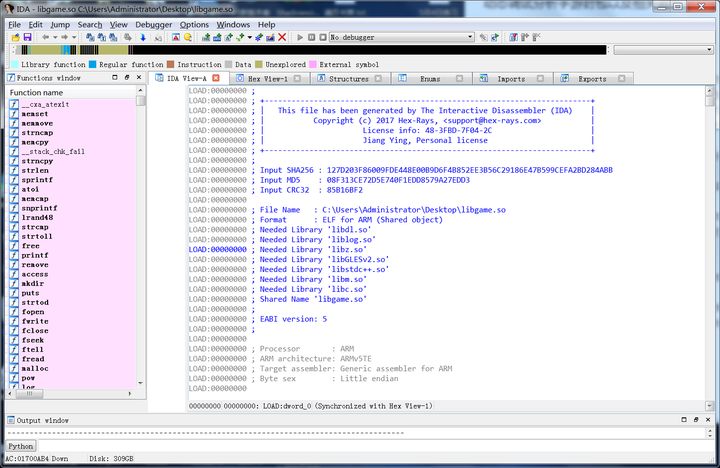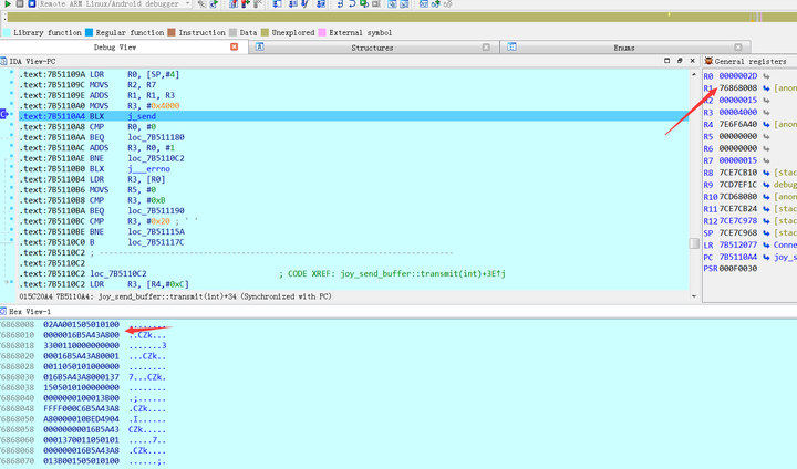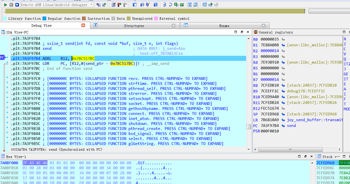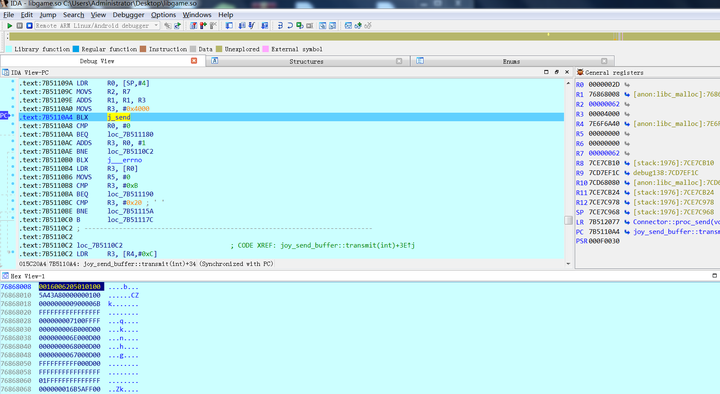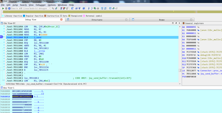 静态加载要调试.so文件,对ARM汇编和函数进行分析(如图)