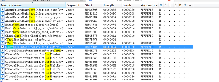 按shift+F3,打开函数窗口,用ctrl+F搜索card关键字,可以得到一些和卡牌相关的函数(如图)
