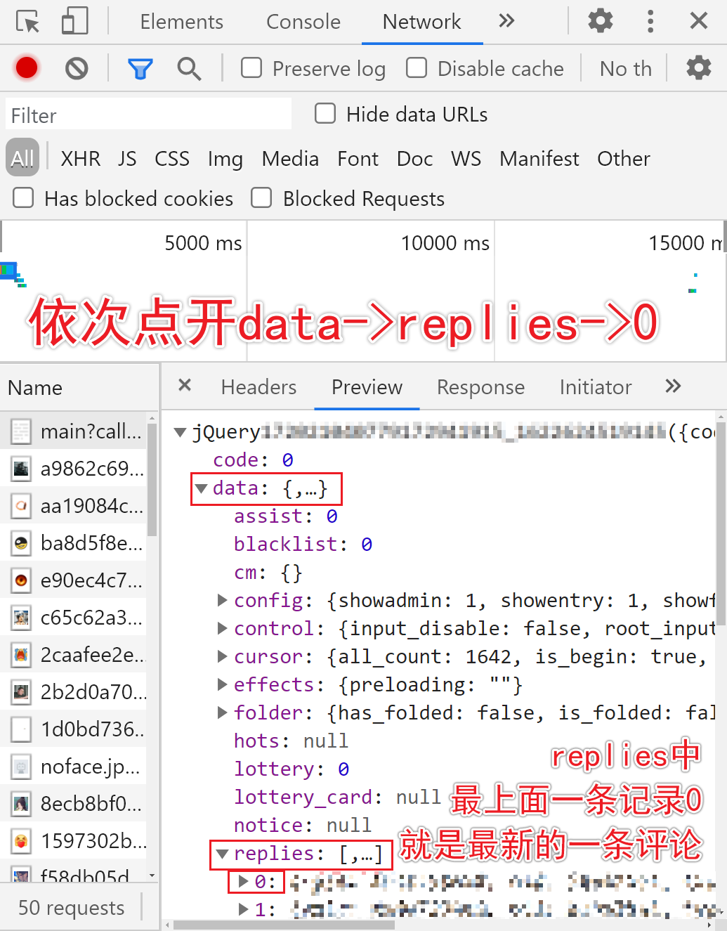 点击按时间排序,并在右侧的开发者工具中找到main开头的请求