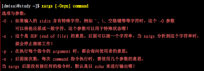 使用xargs 的原因是, 很多指令其实并不支持管道符,因此我们可以通过xargs来为后面的指令使用standard input中的数据(参数)。