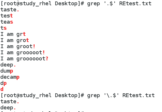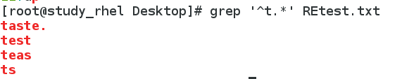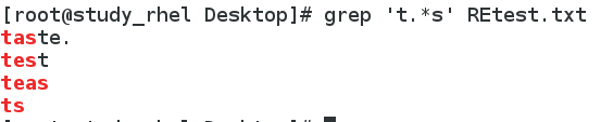 4. 匹配以t开头中间有零个或任意个字符后跟s的字符串所在行,注意和3比较