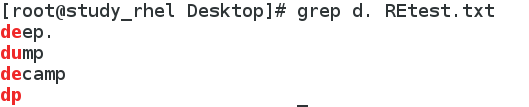 6. 匹配d后跟有一个字符的字符串所在行 # 注意结果中没有单独的d字母所在行