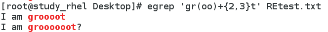 8. 匹配gr开头后跟的(oo)最少出现2次、最多出现3次,后跟t的字符串所在行,注意这里用了egrep
